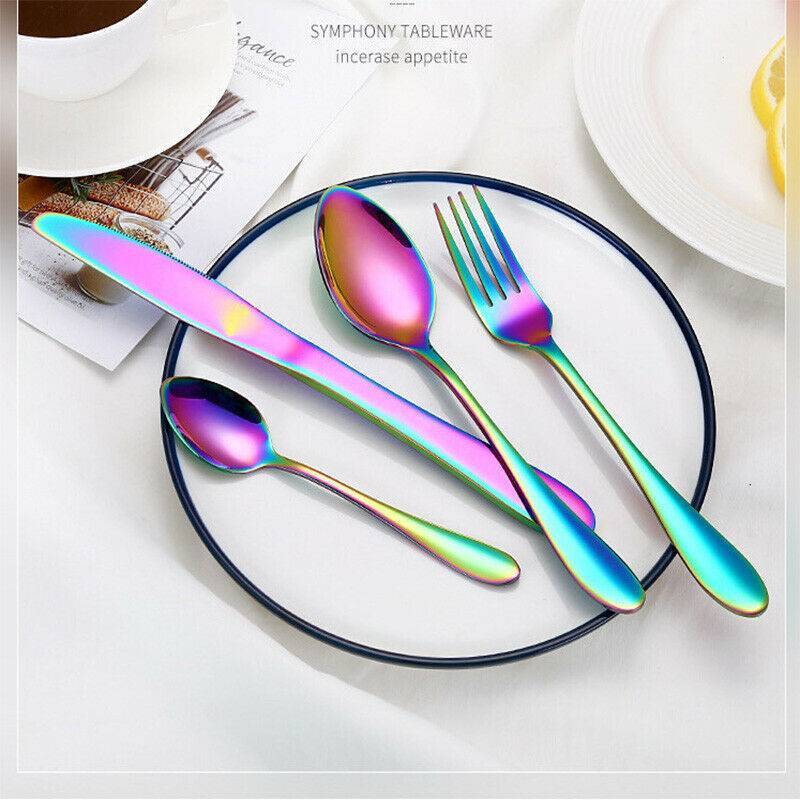 24PCS Stainless Steel Cutlery Set Creative Dinnerware Silverware Sets Fork Knife Spoons Tableware For Kitchen Household
