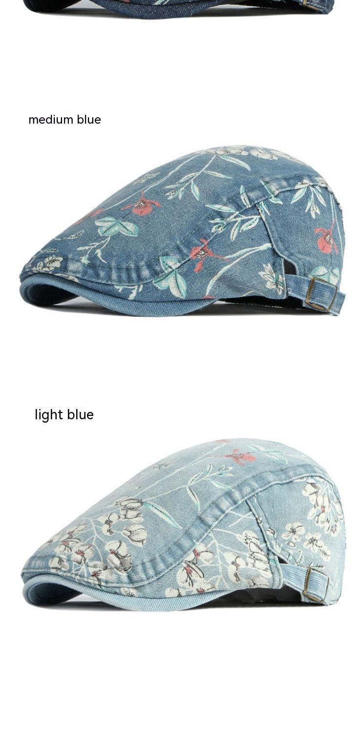Denim Hat Advance Hats Flower Printed All-matching Peaked Cap