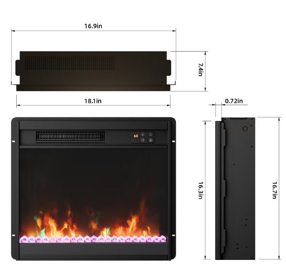 Product Name: 18 Inch Electric Fireplace Insert with LED Realistic Flame, Recessed Fireplace Heater & Linear Fireplace with Timer, Remote Control, 7 Adjustable Flame Colors, 1500w, Black