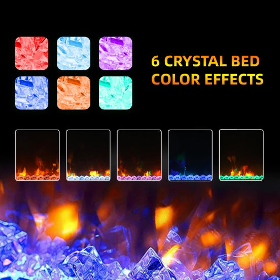 Electric Fireplace: The fireplace has 7 flame and LED flame bed color modes; 5 flame speed modes; 5 levels of flame brightness; The special automatic flame design makes the fireplace more attractive and practical.