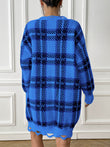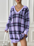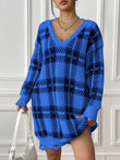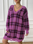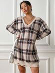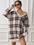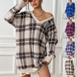 Fashion V-neck Plaid Dress Casual Loose Long-sleeved Dresses Autumn And Winter Women's Clothing