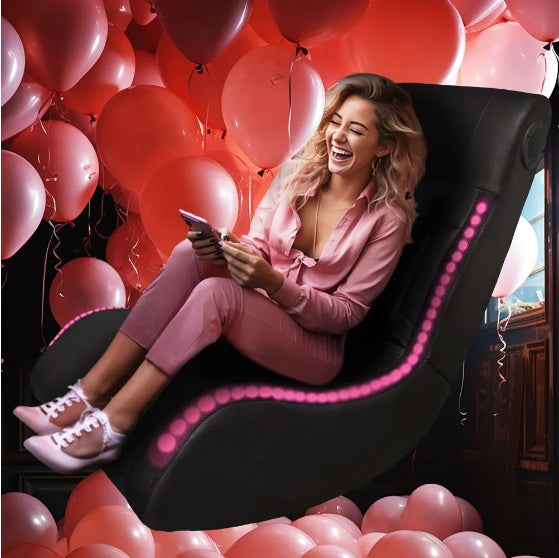 Enjoy a versatile gaming chair that will take you directly into a colorful world surrounded by music as you play with your phone or other electronic devices.
