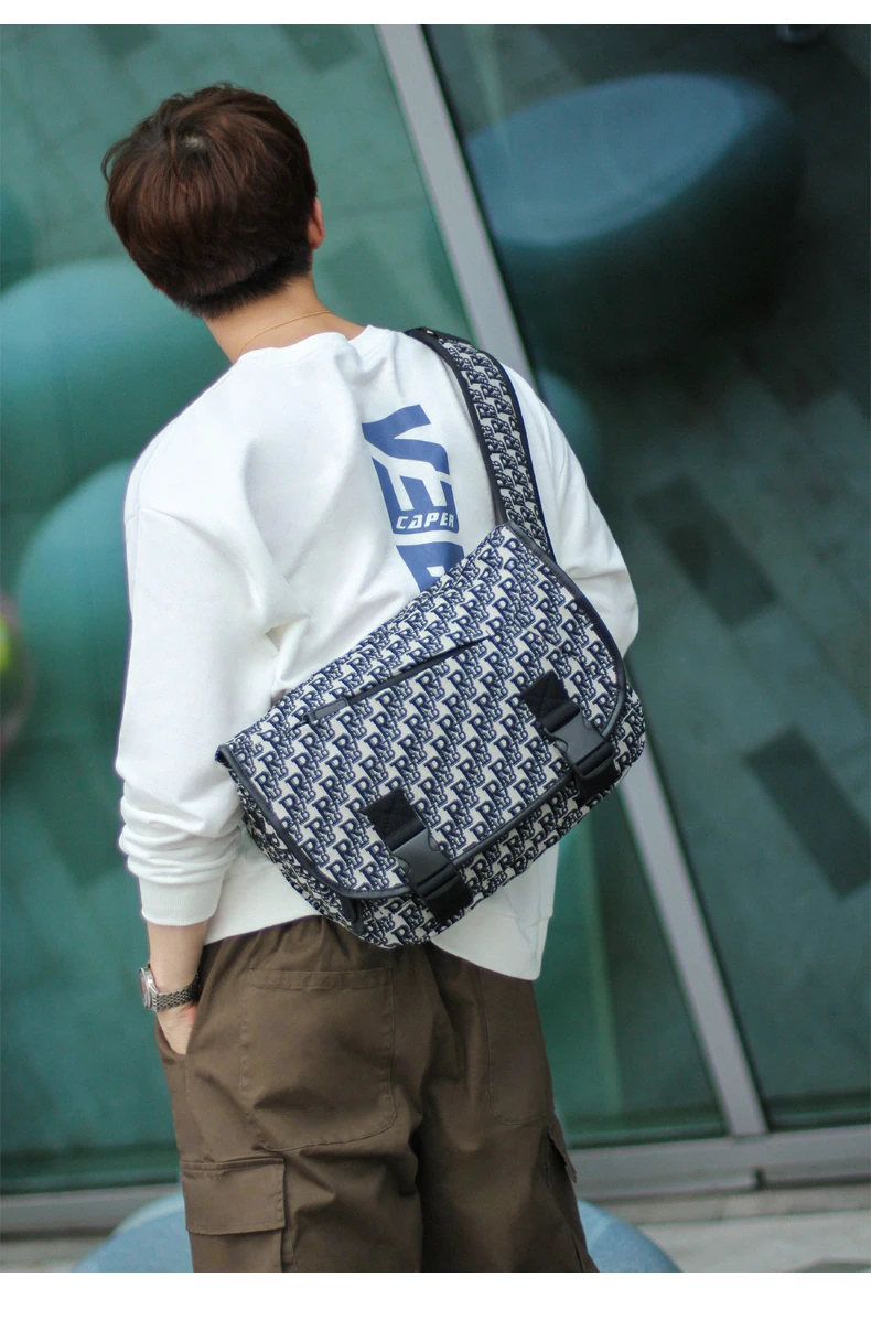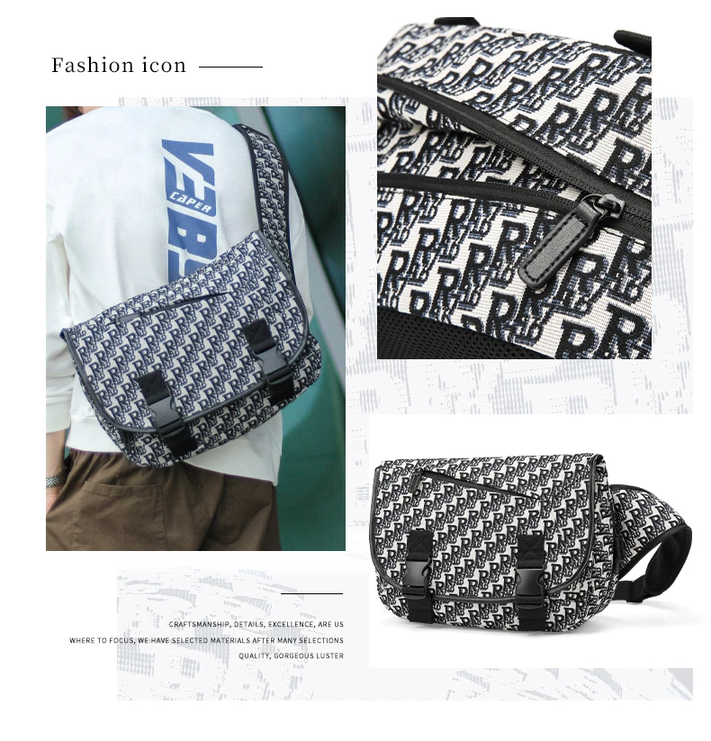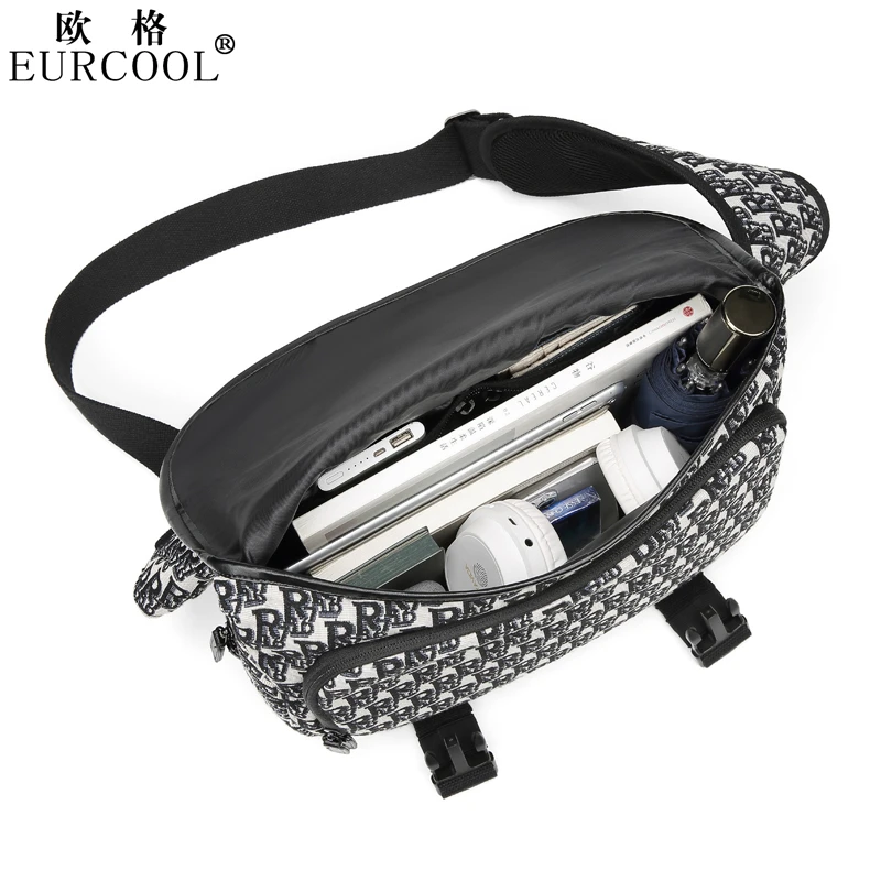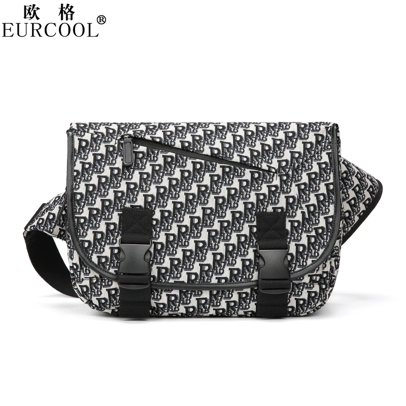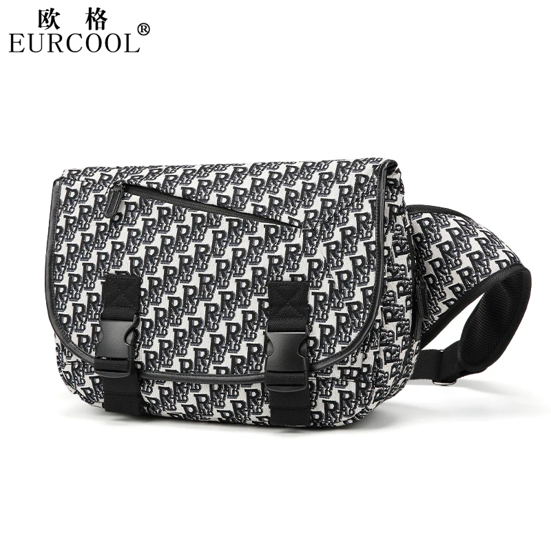 Eurcool Custom Fashion Letter Pattern Print Canvas Cotton Fabric Chest Crossbody Men Sling Messenger Bags
