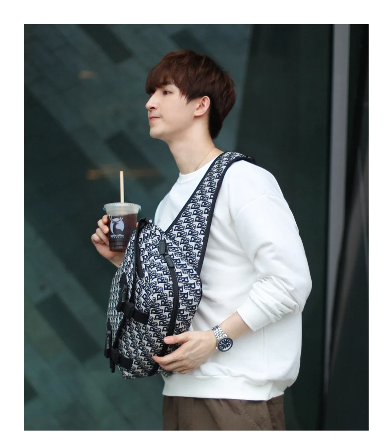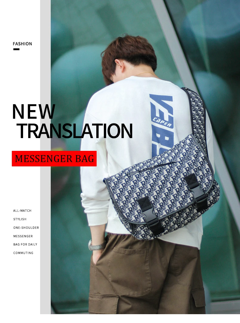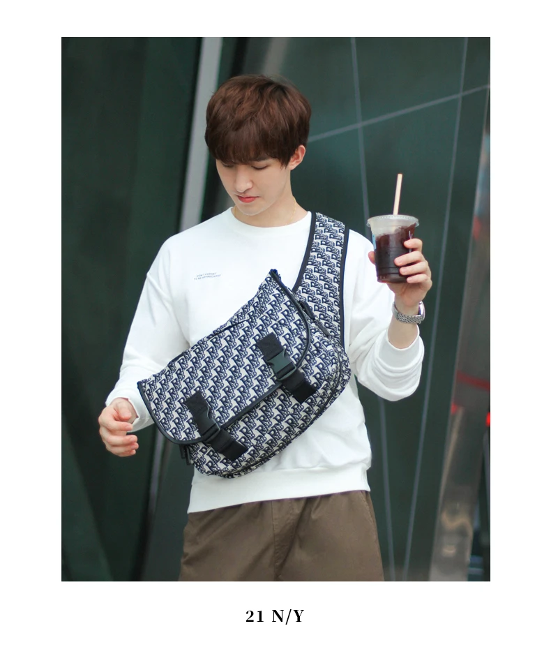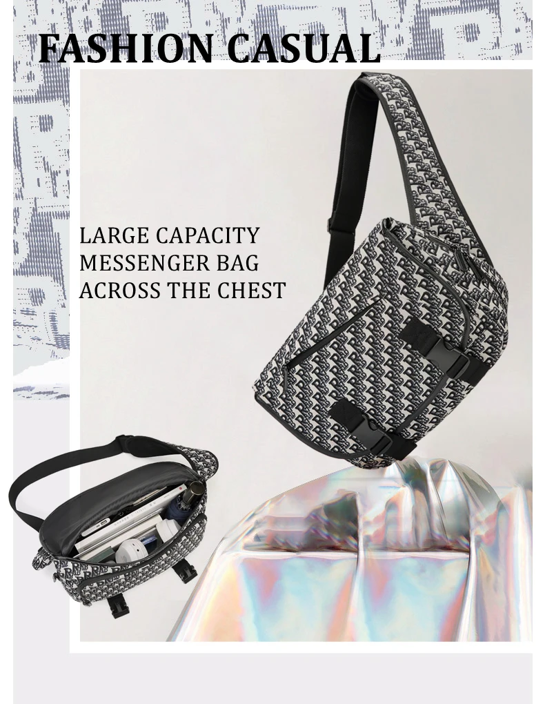 Eurcool Custom Fashion Letter Pattern Print Canvas Cotton Fabric Chest Crossbody Men Sling Messenger Bags